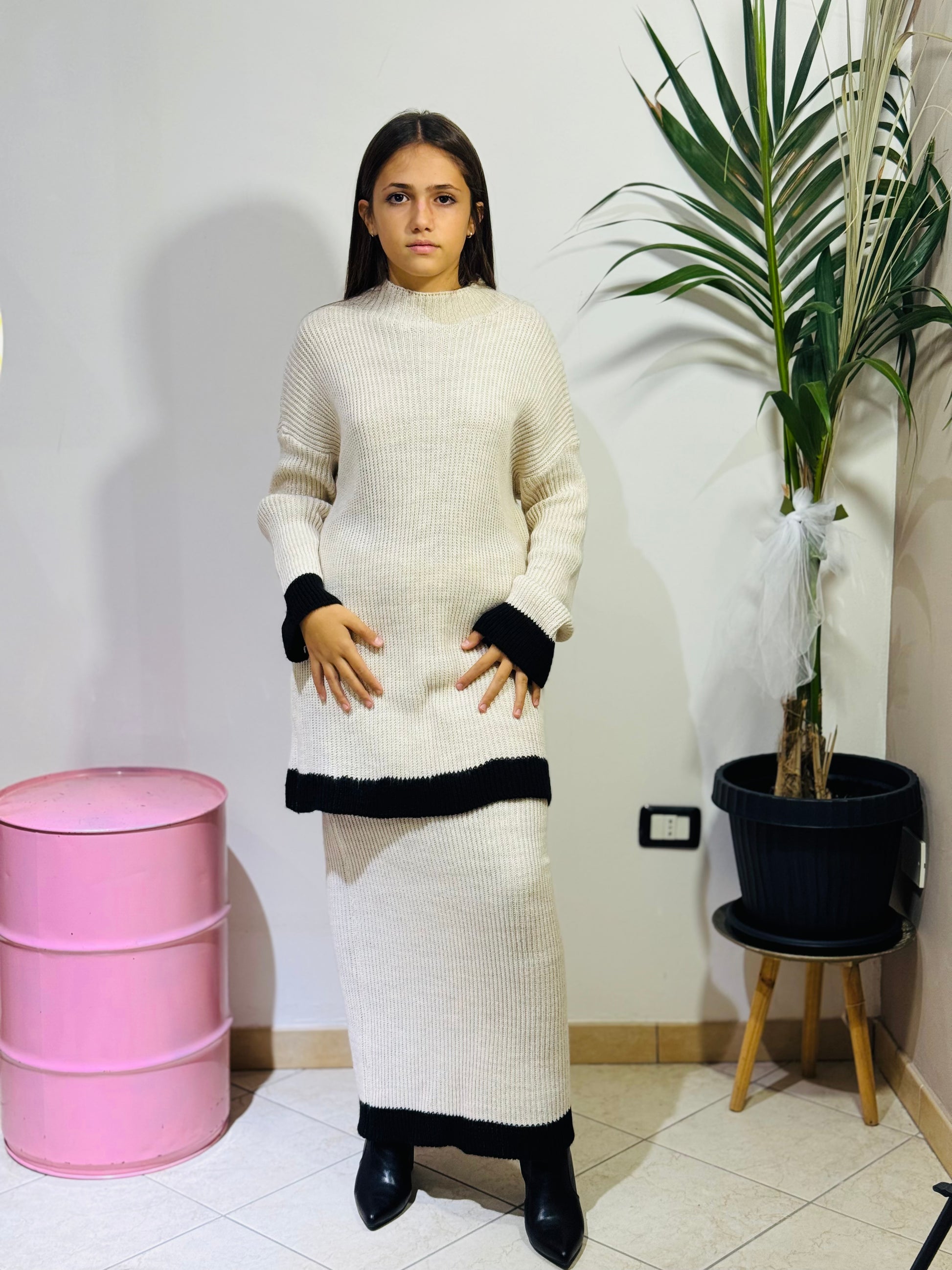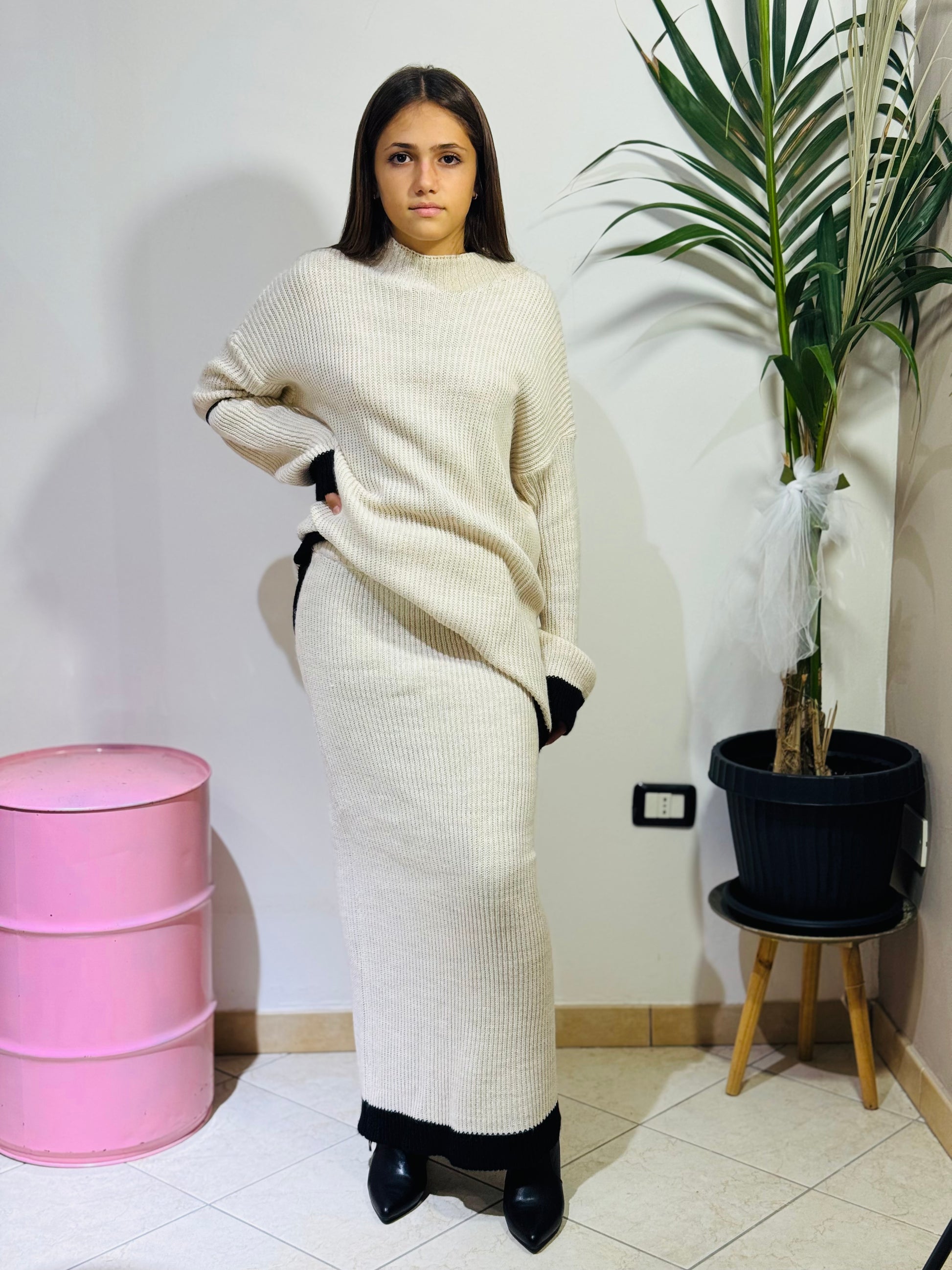 - Maglia morbida + gonna lunga coordinata
