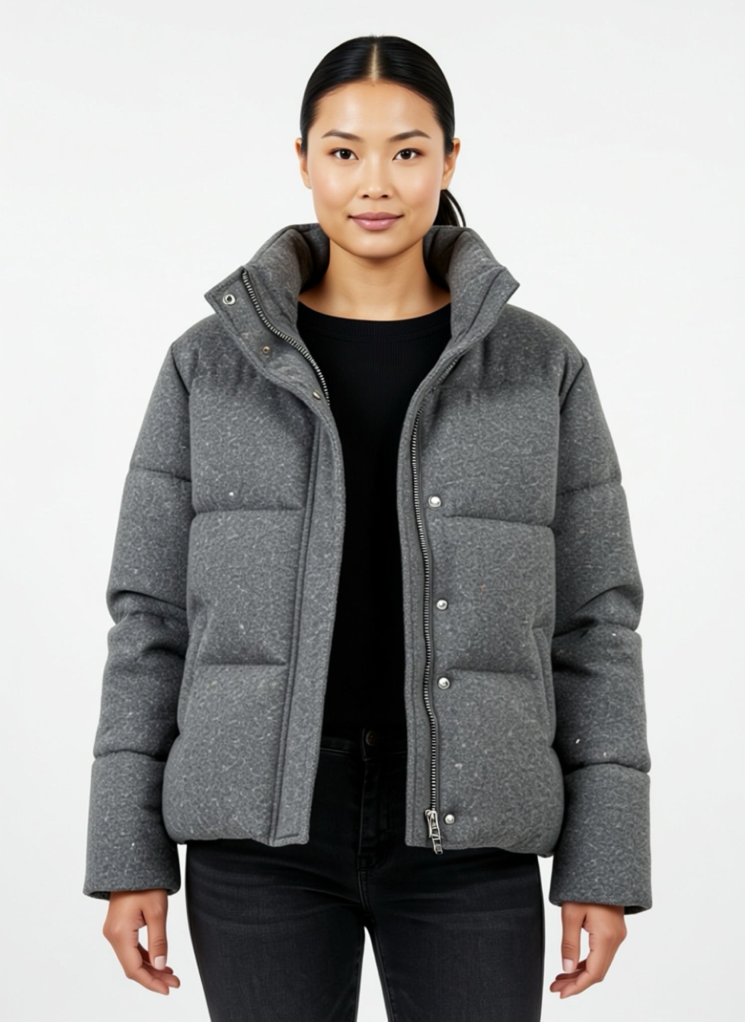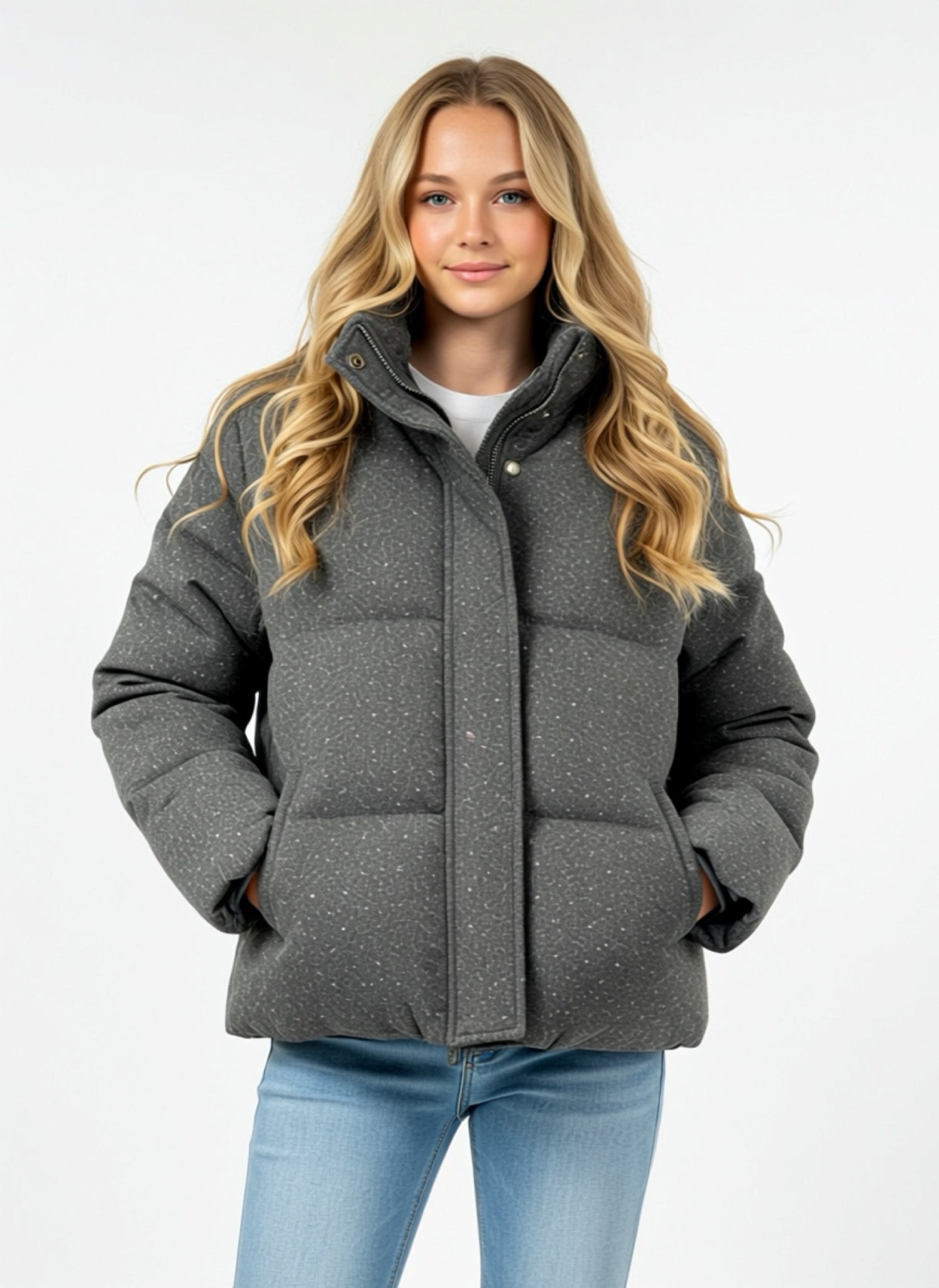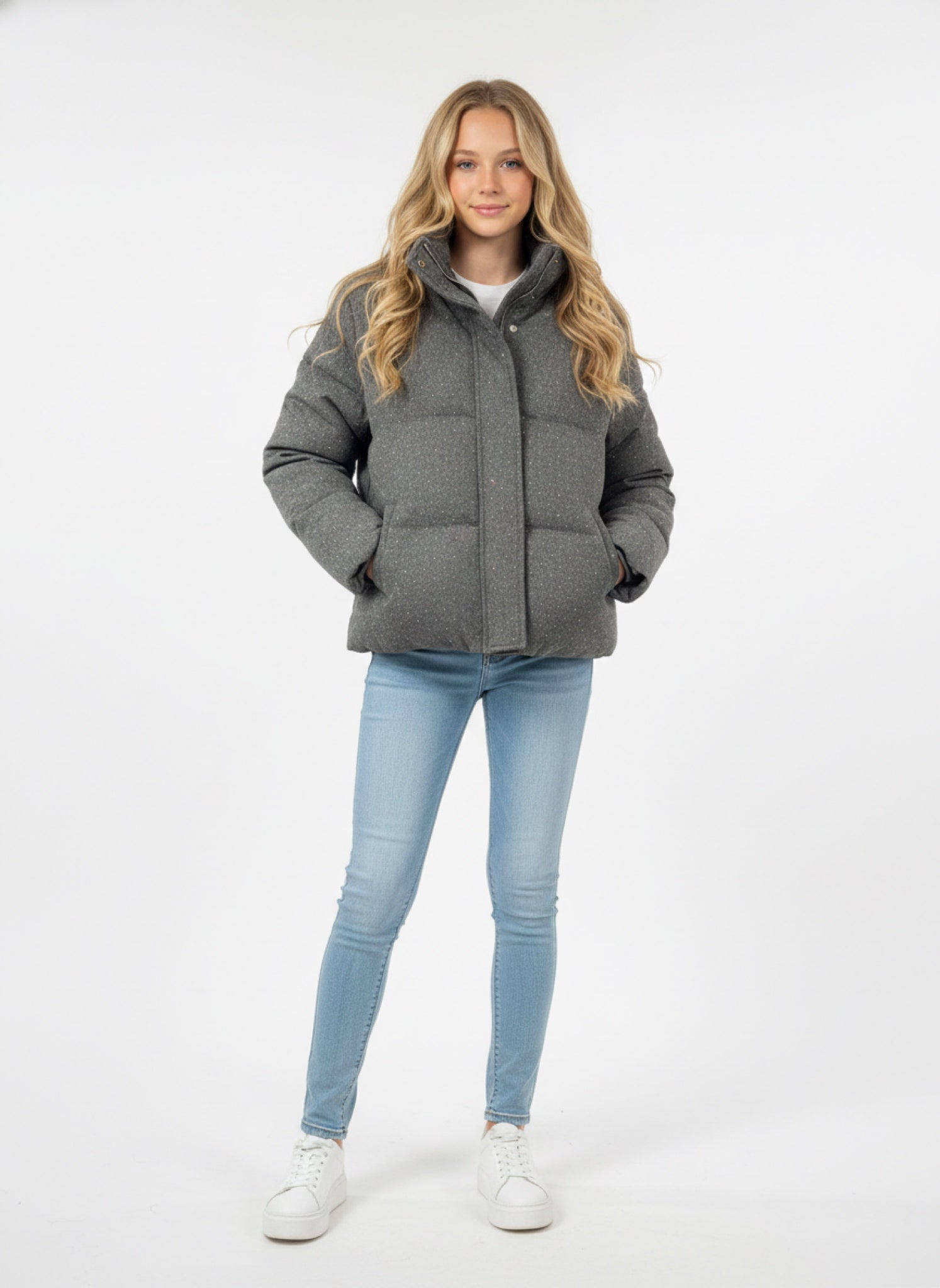 Il piumino corto grigio da donna è il capo must-have per affrontare la stagione fredda con stile e comfort. Dal design pulito e moderno, è perfetto per completare outfit casual e daily chic senza rinunciare alla praticità.