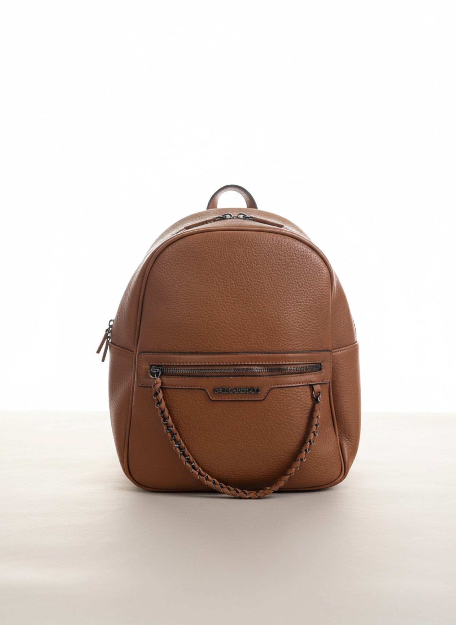 Design minimal, pelle effetto martellato e dettaglio catena frontale che lo rende unico senza essere eccessivo.